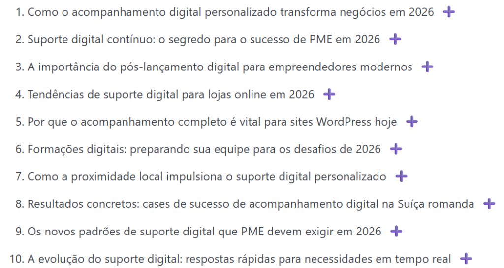 Após analisar o seu site, pode optar por criar até 50 artigos por tema.